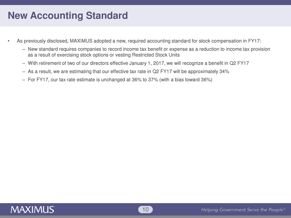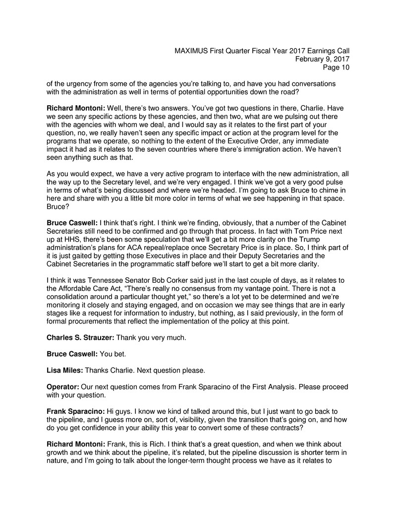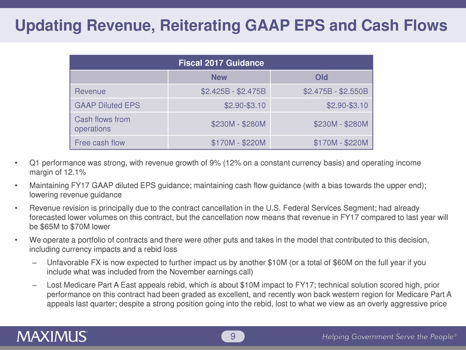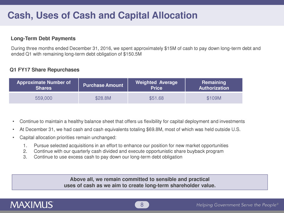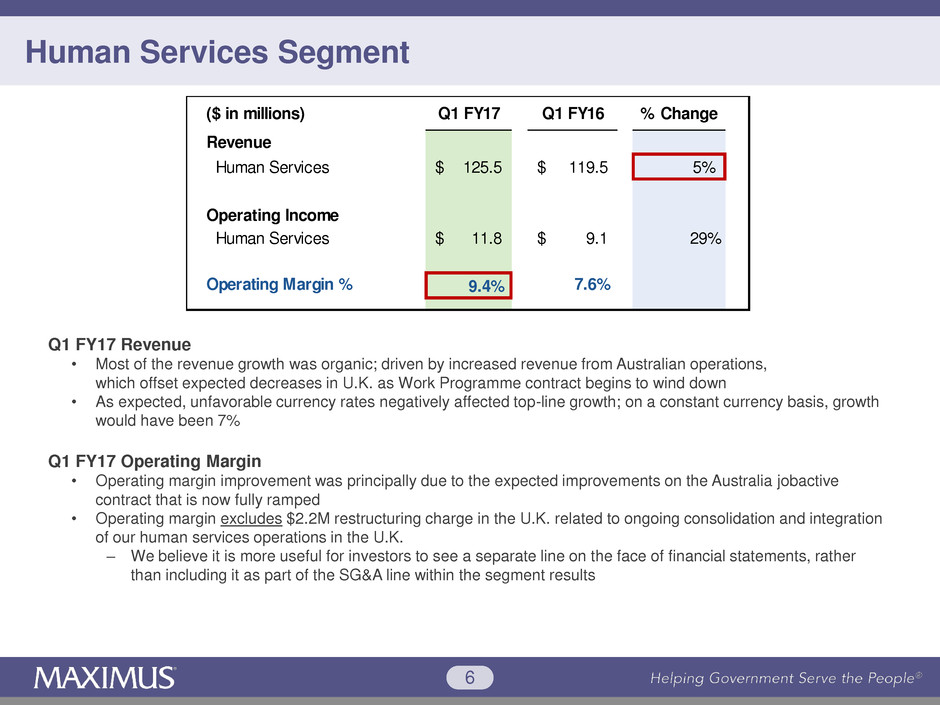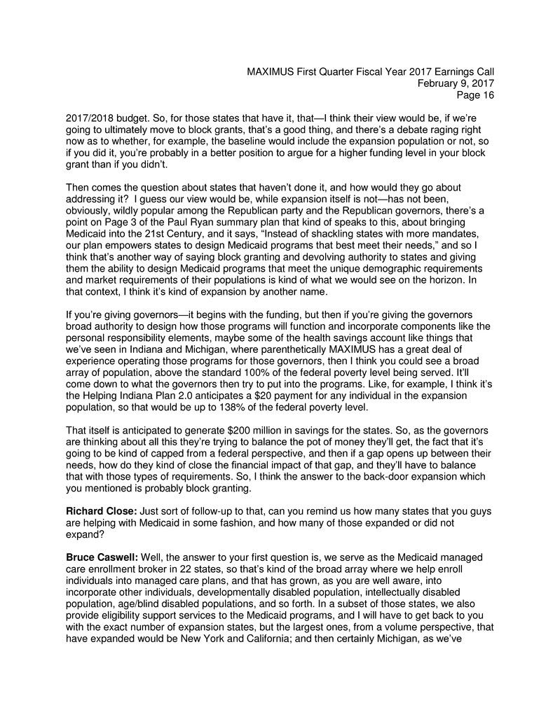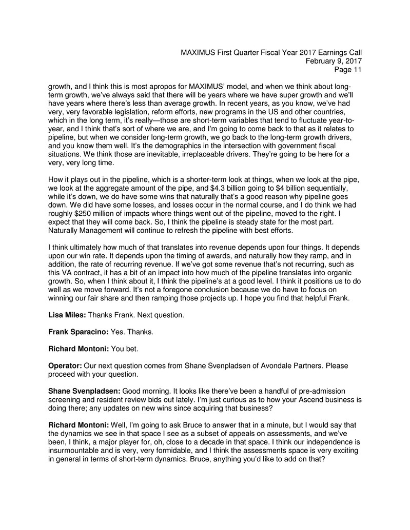 MAXIMUS First Quarter Fiscal Year 2017 Earnings Call
