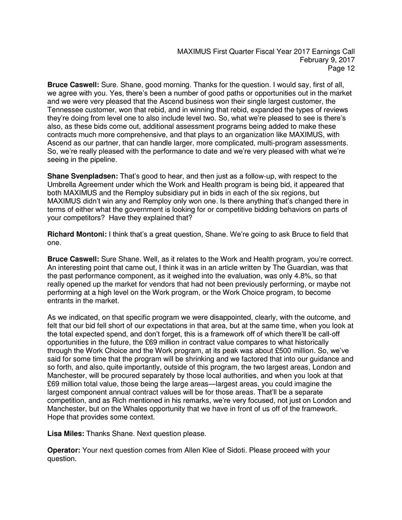 Relations for MAXIMUS. Thank you. Ms. Miles, you may begin.