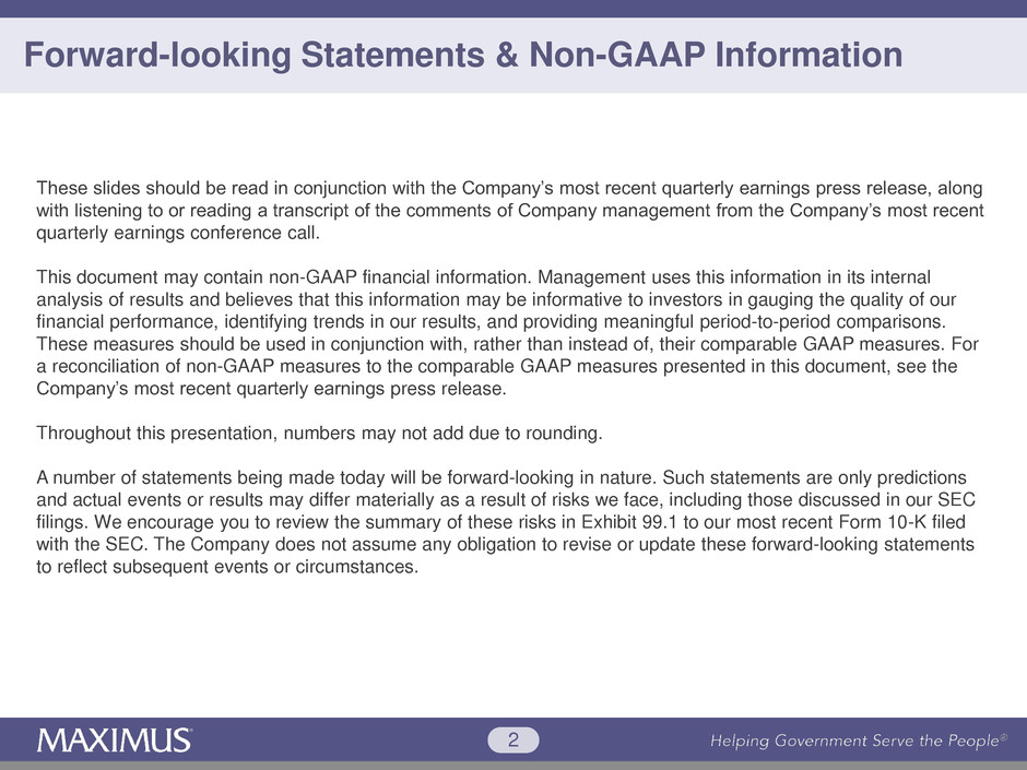 Rick Nadeau: Thanks Lisa. This morning MAXIMUS reported financial results for the first