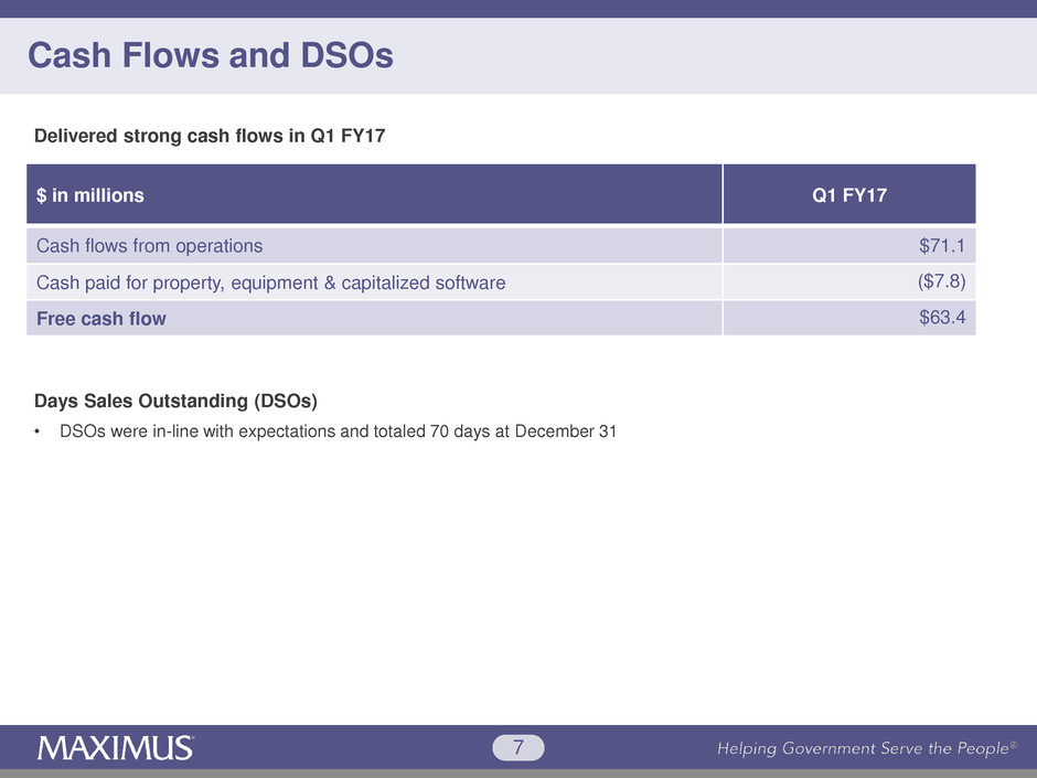 I will now briefly discuss cash flow and balance sheet items. In the first quarter, MAXIMUS