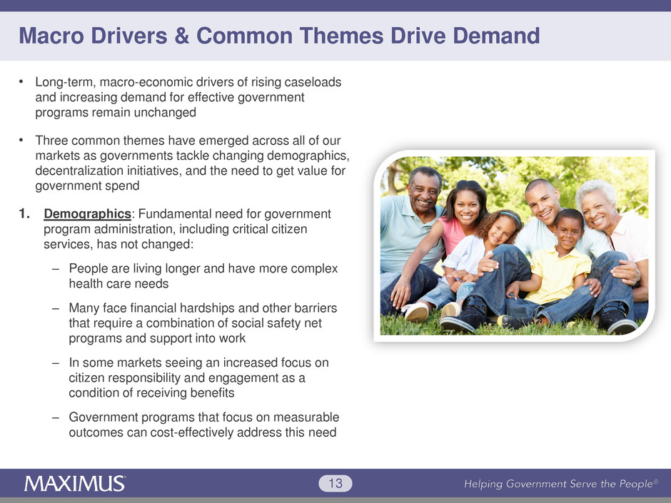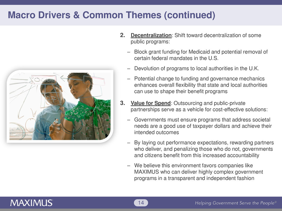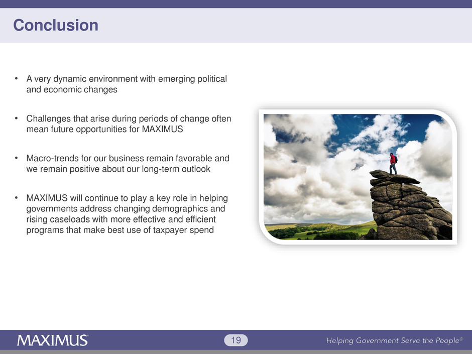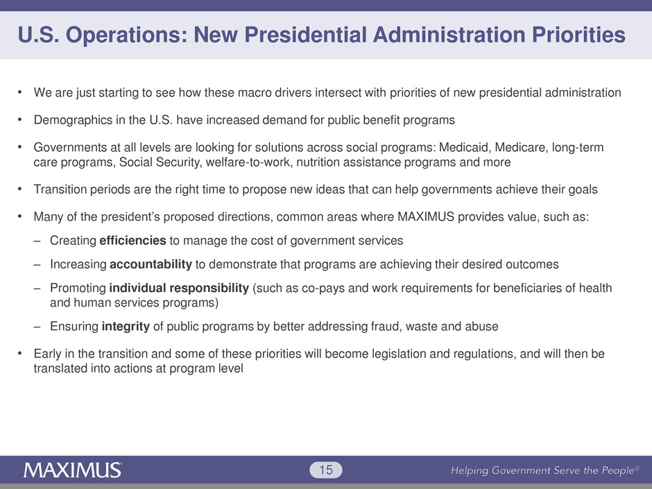 • Many of the president’s proposed directions, common areas where MAXIMUS provides value, such as: